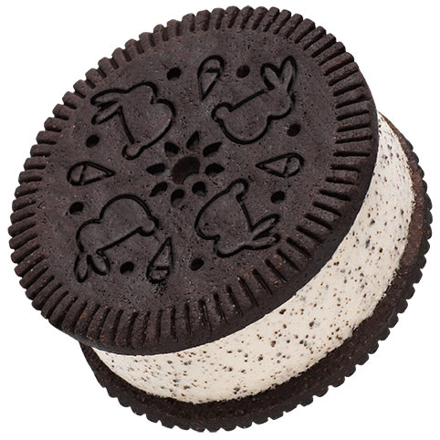 Creamy vanilla flavored ice cream layered between two chocolate chip cookies rolled in mini chocolate chips.